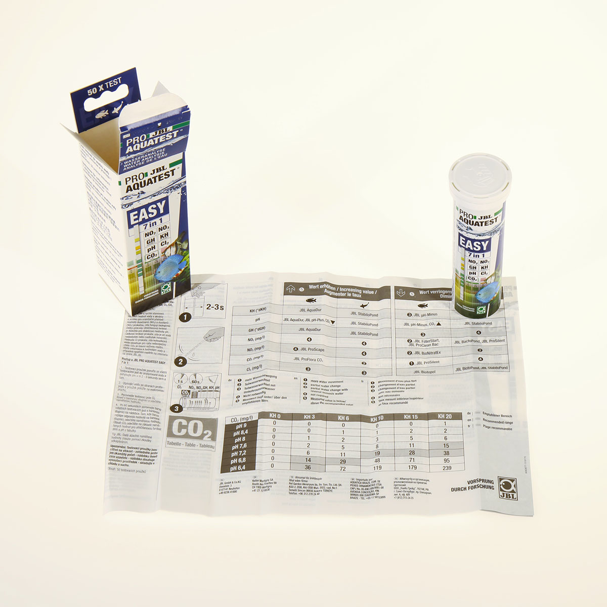 - Pakkauksen sisältö: EasyTest 7 in 1 testiliuskat vär- ja CO2-taulukolla