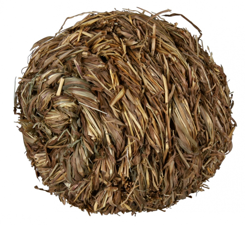 Heinästä valmistettu ruohopallo, jonka sisällä on kulkunen.