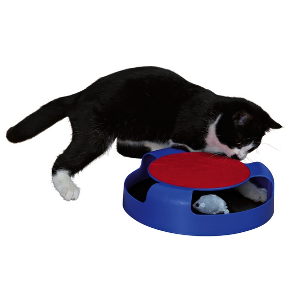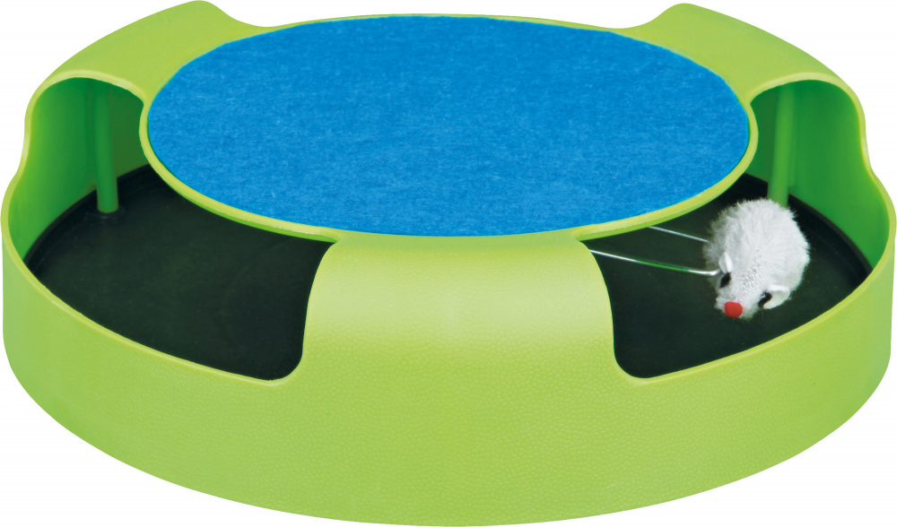 Mukavaa puuhaa kissallesi. Kissa saa saalistaa hiirtä kiekosta. Pohjan matto hoitaa kissasi kynsiä luonnonmukaisesti.