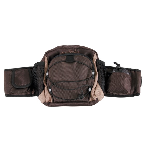 Hyvä apuvälinen koiran koulutukseen. Ihanteellinen lenkkeilyyn,kävelyyn ja retkeilyyn. Alaselkään sijoittuva tarvikelaukku, jossa useita säylytystaskuja ja heijastinnauhoja. Etuosassa kätevä talutinvyö,mahdollistaa koiran ulkoiluttamisen kädet vapaana. Laukkuosa 21×20×15 cm. Väriltään ruskea/beige