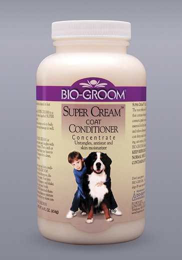 Bio-Groom SUPER CREAM (454 ml) on erittäin tehokas öljyhoito. Runsaasti öljyjä sisältävä hoitoemulsio, joka sisältää vehnänalkioöljyä, E-vitamiinia ja muita kosmeettisia turkin ja ihon hoitoaineita. Nopea ja syvä hoitovaikutus. Erityisen sopiva kuivan tai ylirasittuneen turkin hoitoon. Kosteuttaa ihoa ja estää sen kuivumista ja kutinaa. Tekee turkista helposti kammattavan niin märkänä kuin kuivanakin. Turkki tulee hohtavaan näyttelykuntoon eikä tunnu öljyiseltä.