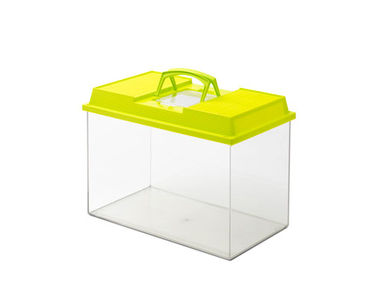 Muovinen terraario matelijoiden sekä pienjyrsijöiden kuljetukseen ja karanteeniin. Sopii myös elävän ruuan säilyttämiseen ja kuljettamiseen. Ilmareijät takaavat ilman vaihtumisen. Kantokahva.