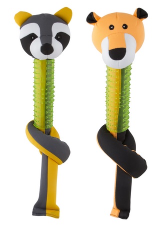 Kelluva, neopreenistä valmistettu lelu. Lelun keskiosa on valmistettu TPR:stä (Thermo Plastic Rubber), josta saa pitävän otteen ja joka on muotoiltu hoitamaan samalla hampaita ja ikeniä. Lelun päässä vinku. Kaksi erilaista hahmoa.